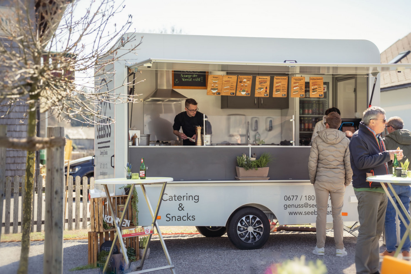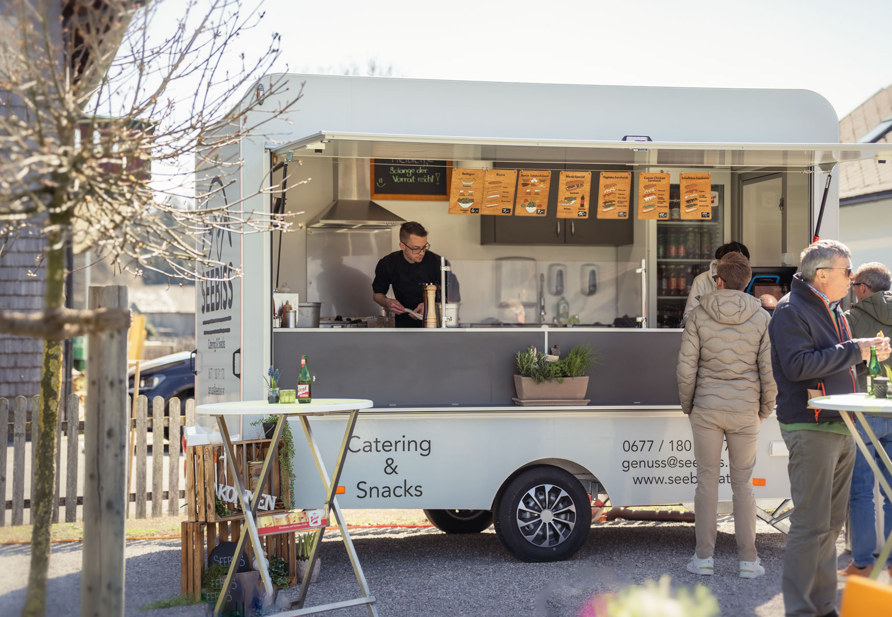 Mit meinem Foodtruck „Seebiss“ setze ich nun meinen Traum in die Realität um. An meinem fixen Standplatz in Abersee biete ich hochwertige Sandwiches, Bosna, Pommes und Salate an – darunter Spezialitäten wie das Tagliata-Sandwich und das Caesar-Chicken-Sandwich. Zusätzlich gibt es saisonale Specials, die sich an frischen, regionalen Zutaten orientieren. Für besondere Anlässe bin ich auch mobil unterwegs und biete Catering-Angebot nach individuellen Kundenwünschen an. Der Sommer 2025 war zwar sehr durchwachsen, aber es hat mir richtig Spaß gemacht euch kulinarisch zu verwöhnen. Catering geht weiter am Standort sehen wir uns in den Osterferien wieder!