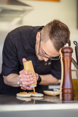 Mein Name ist Sebastian Haas, ich bin 26 Jahre alt und lebe am wunderschönen Wolfgangsee. Schon früh entdeckte ich meine Leidenschaft für das Kochen und konnte über die Jahre wertvolle Erfahrungen in der gehobenen Gastronomie sammeln. Nach meiner Lehre zum Koch arbeitete ich sechs Saisonen am Arlberg, darunter auch als Küchenchef. Zudem konnte ich als Souschef in St. Wolfgang meine Führungskompetenzen weiter ausbauen. Neben meiner Arbeit in der klassischen Gastronomie hatte ich die Chance, mein Können bei besonderen Events wie dem Oktoberfest, einer Messe in der Schweiz und sogar bei der Formel 1 unter Beweis stellen. Diese Erfahrungen haben mich geprägt und mir gezeigt, dass ich meine eigene kulinarische Vision verwirklichen möchte.